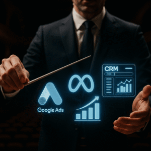 O Framework do Orquestrador: Como Sincronizar Mídia Paga, CRM e Vendas para Crescer de Forma Previsível Seu negócio tem as peças certas no tabuleiro: você