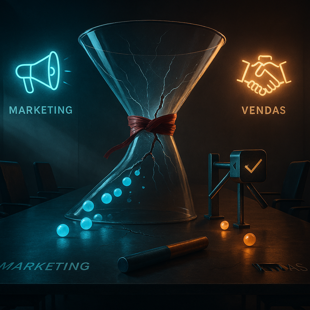 Muitas empresas operam com marketing e vendas em silos, cada um com suas próprias metas, linguagem e ferramentas. O marketing foca em atrair volume de contatos, enquanto vendas se concentra em fechar negócios. Sem uma ponte entre esses dois mundos, o atrito é inevitável. O primeiro passo para construir essa ponte é criar uma linguagem comum, e essa linguagem se chama alinhamento.