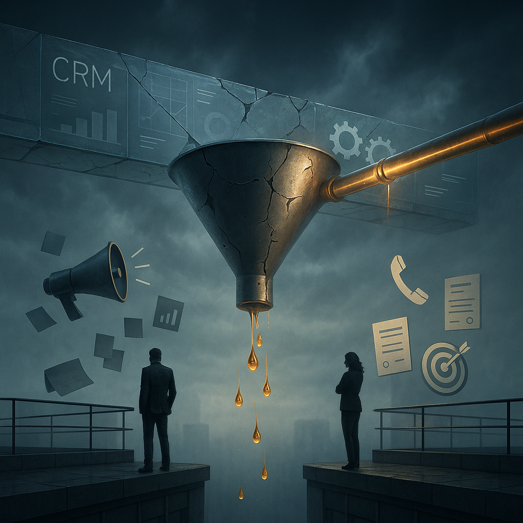 - Retrabalho constante: Vendedores perdem tempo refazendo perguntas que o marketing já fez, e o marketing nutre contatos que já foram descartados por vendas, sem saber o motivo.