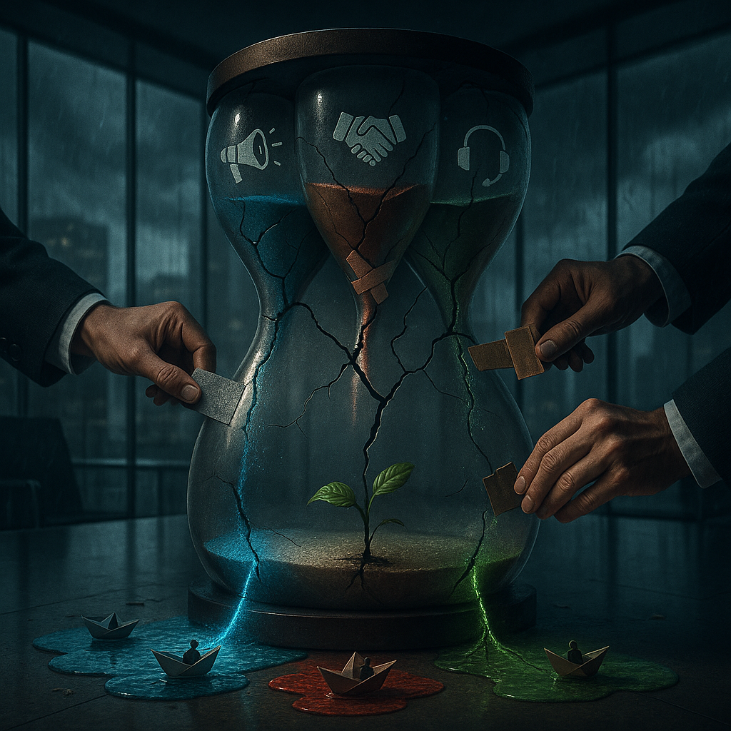 O problema mais comum em operações comerciais em crescimento não é a falta de esforço, mas a falta de conexão. O marketing gera leads que a equipe de vendas não entende o contexto. As vendas fecham negócios com promessas que o time de atendimento desconhece. O cliente, por sua vez, fica no meio do caminho, repetindo sua história a cada novo contato e percebendo uma empresa desorganizada. Essa desconexão, conhecida como “silos operacionais”, gera custos, retrabalho e, o mais grave, uma péssima experiência do cliente.